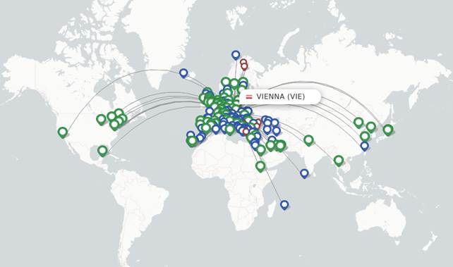 Vienna Airport has good connections to the public transport network. The congress venue can be reached quickly by train, bus or cab.